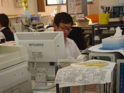 事務所は奥行きがあり、MBのスタッフは奥の隅の方で仕事をさせていただいてます