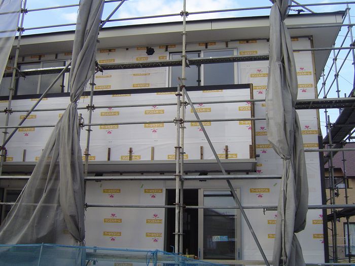 玄関側の一部は外壁が張られていました